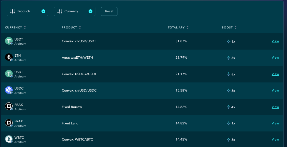 All info regarding the ARB points program is clearly listed on the ARB points program page. For example, here are the top leveraged vault opportunities by APY and points multiple: