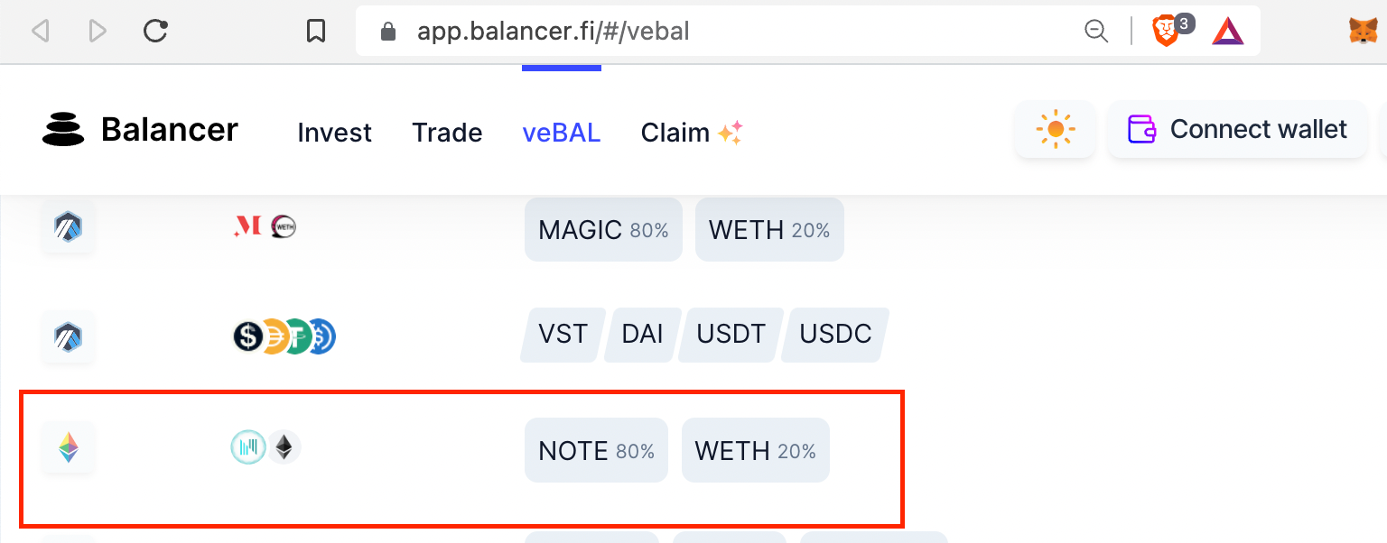 - Scroll to the NOTE 80%/WETH 20% Pool and click Vote. Done!