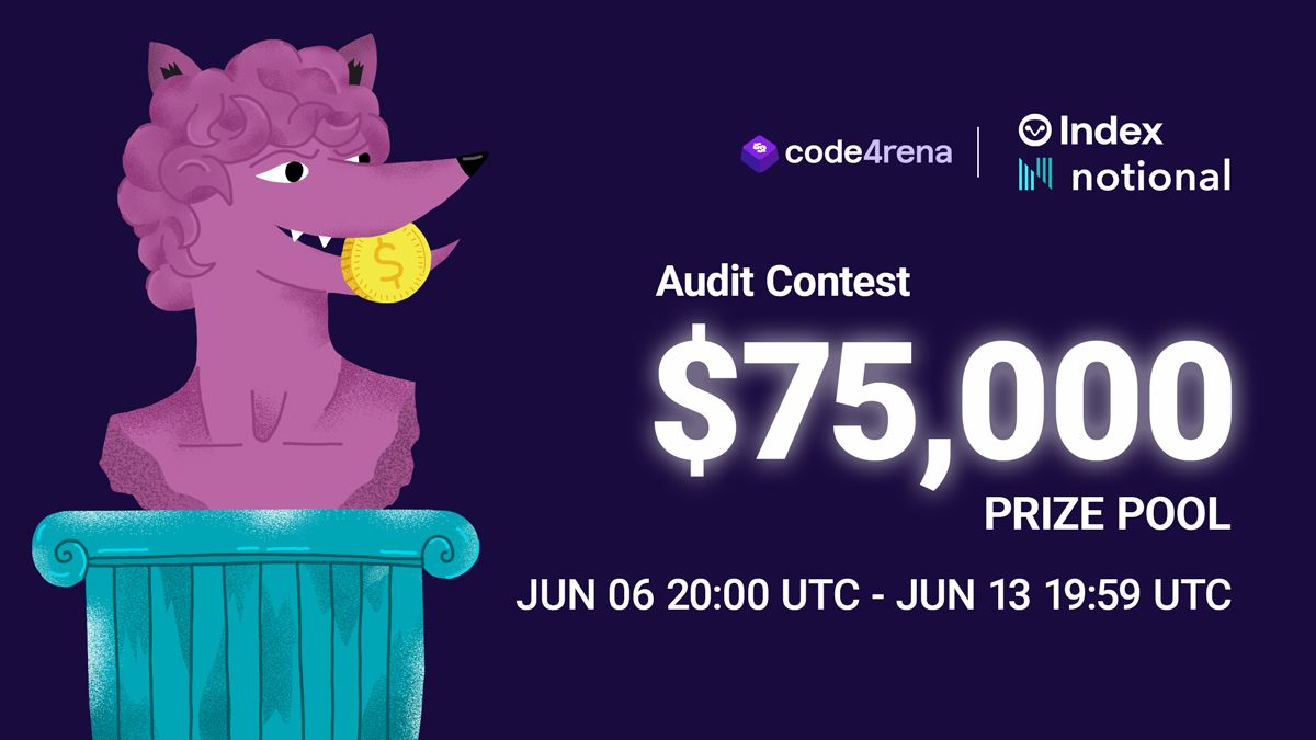 On June 6, Notional Finance will launch another community-driven audit contest in conjunction with Code 423n4, aka Code Arena, aka C4. The contest will cover our upcoming IndexCoop integration, which involved creating an ERC-20 wrapper for Notional fCash (technical walkthrough).