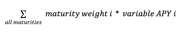 The total LP variable APY is the weighted average across the 3 maturities (3M, 6M,12M):
