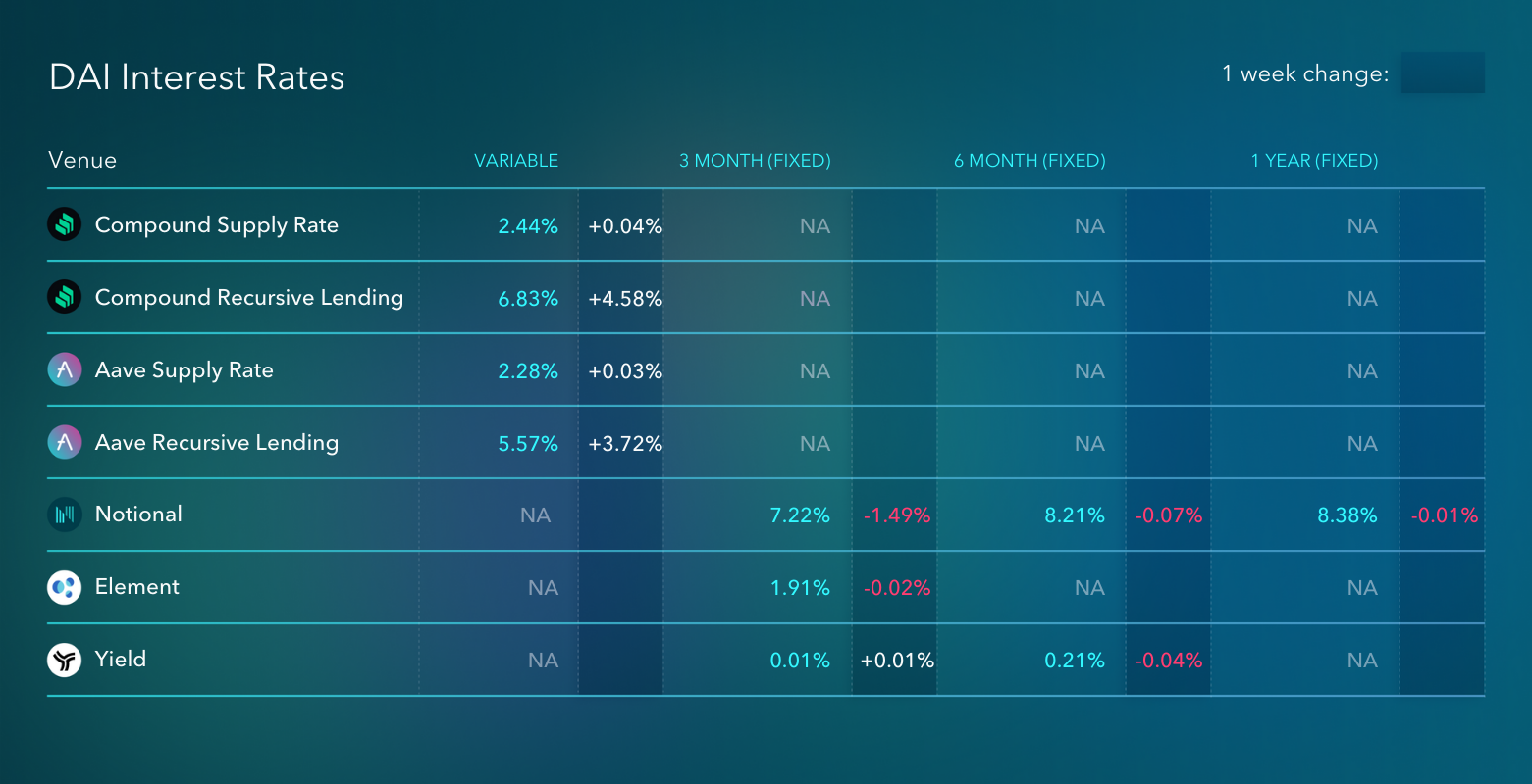 Notional had a big week that pushed interest rates substantially closer to the baseline Compound and Aave supply rates. The influx of capital into Notional continued as an integration with Yearn this past week generated ~$20M in lending alone.