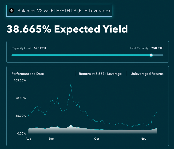 ETH staking rates this high should have a massive effect on DeFi. First of all, they dramatically increase the returns to leveraged staking strategies like Notional's leveraged vaults (coming out of private beta next week) or Instadapp Lite's vaults: